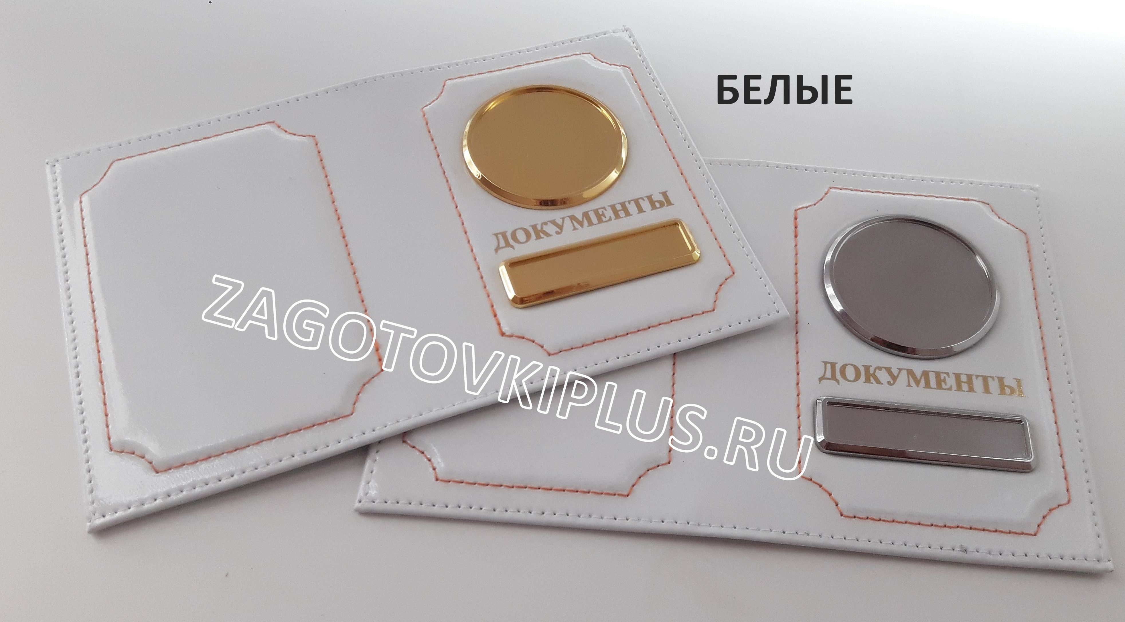 Обложка белая из натуральной глянцевой кожи для авто документов с линзами (золотые вставки)