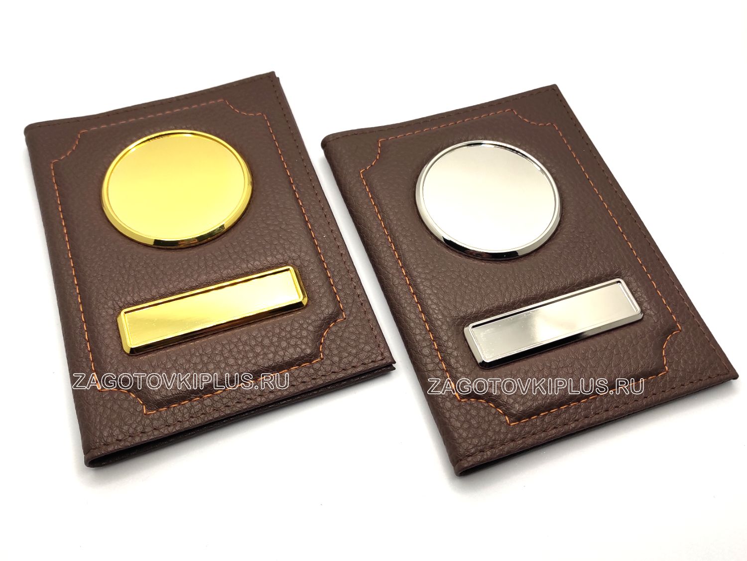 Обложки сделаны из матовой ребристой экокожи. Заготовки обложек имеют специальные металлические вставки с бортиками, которые не темнеют и не облезают. Благодаря этим бортикам изображение защищено от механических воздействий, а полиуретановая линза защищает картинку от выгорания и стирания.Изготовление кожаной обложки занимает 5 минут и не требует специального оборудования. Макет для обложки распечатывается на цветном струйном принтере на самоклеющейся фотобумаге, далее к распечатанному изображению приклеивается линза и вся эта "конструкция" вырезается ножницами и убрав защитный слой с самоклейке вклеивается в металлическую вставку с бортиками. Эксклюзивная обложка для авто документов с гос номером и логотипом готова!