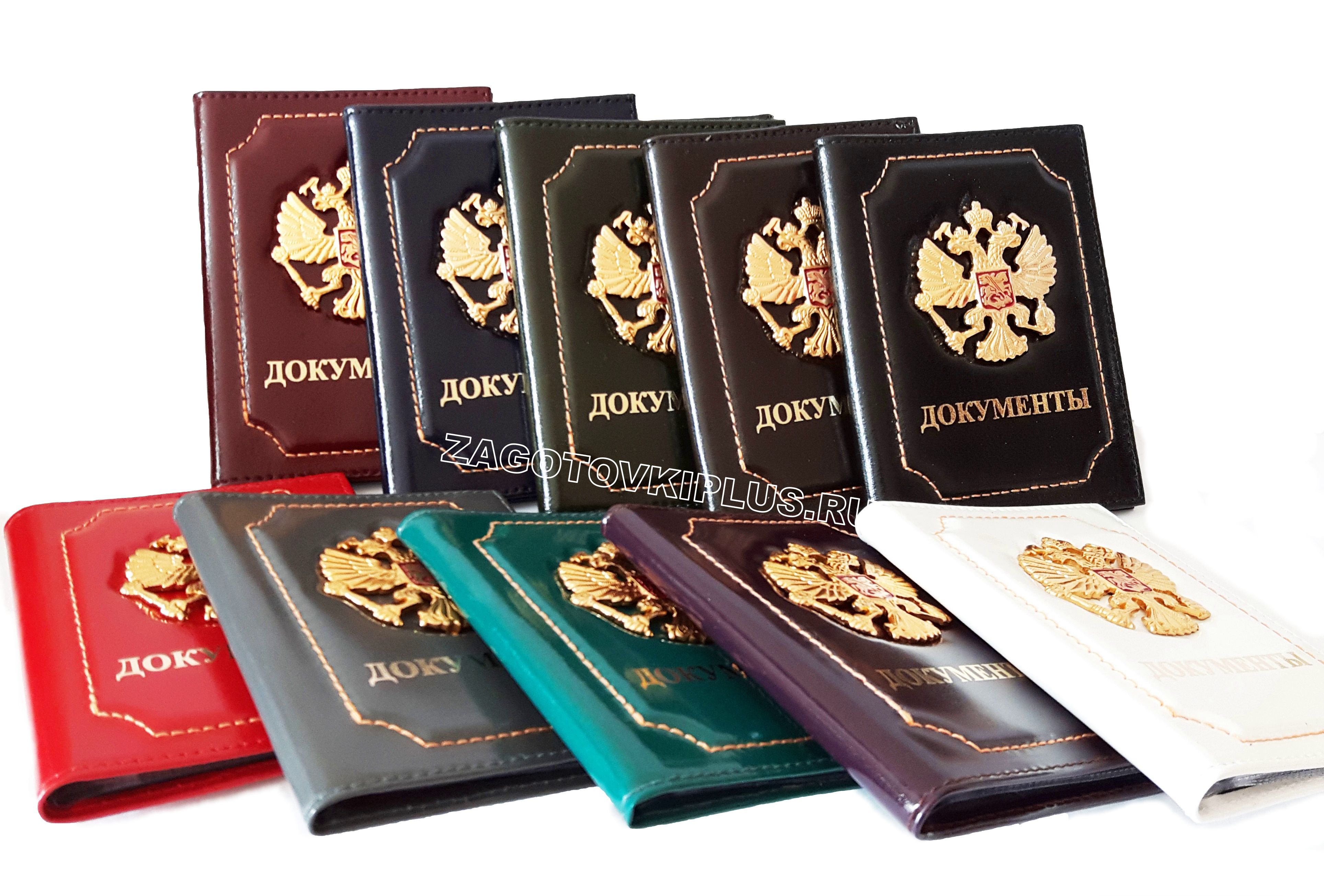 Бирюзовая кожаная обложка для авто документов с гербом РФ