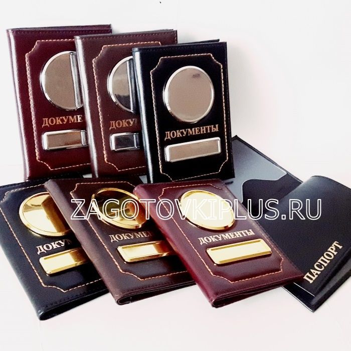 - обложка из натуральной матовой кожи на автодокументы 2в1 (с отделением для паспорта) с металлическими вставками хром или золото на Ваш выбор