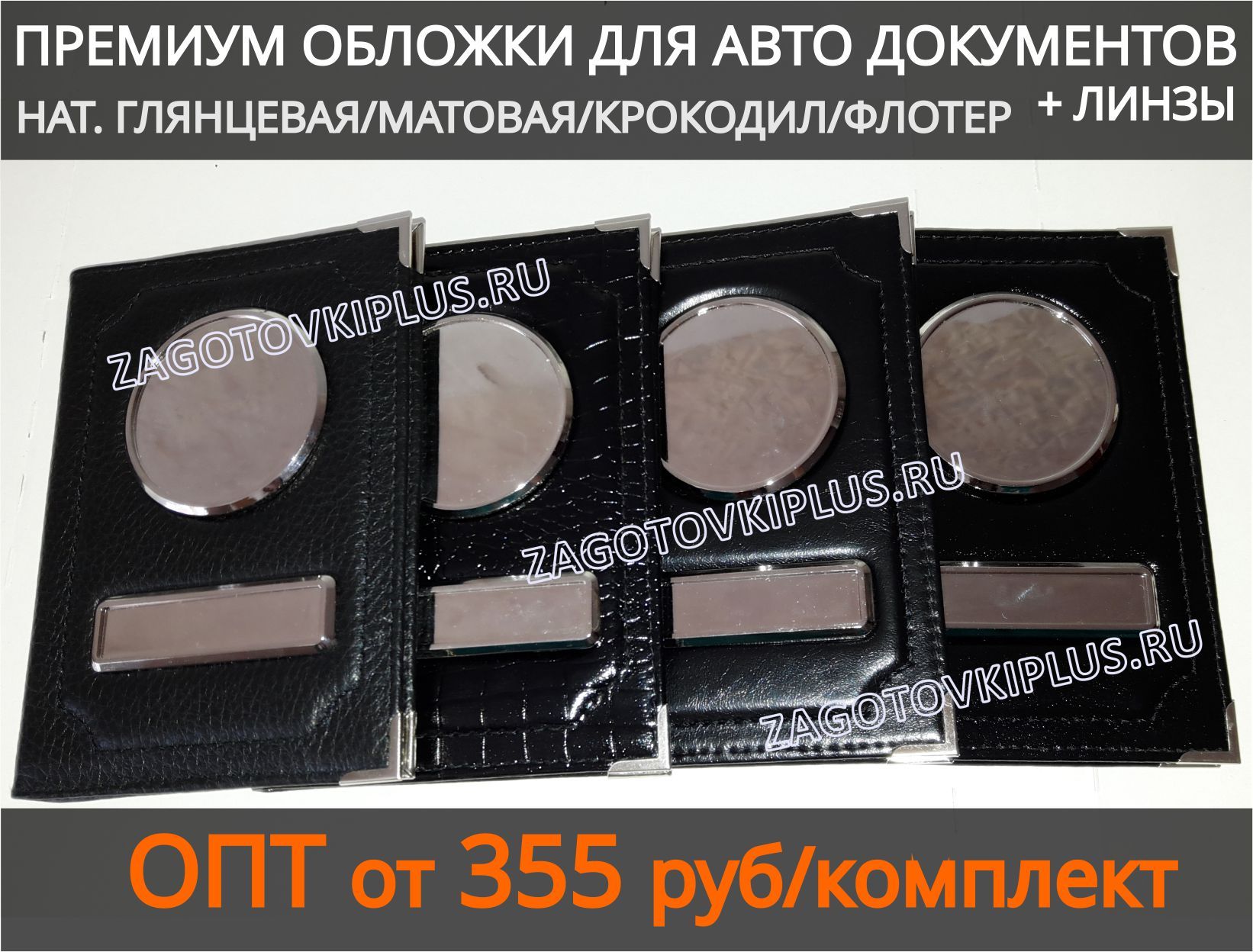 Обложки сделаны из натуральной кожи глянцевой, матовой, крокодила, флотер - на Ваш выбор.Заготовки обложек имеют специальные металлические вставки с бортиками, которые не темнеют и не облезают. Благодаря этим бортикам изображение защищено от механических воздействий, а полиуретановая линза защищает картинку от выгорания и стирания.