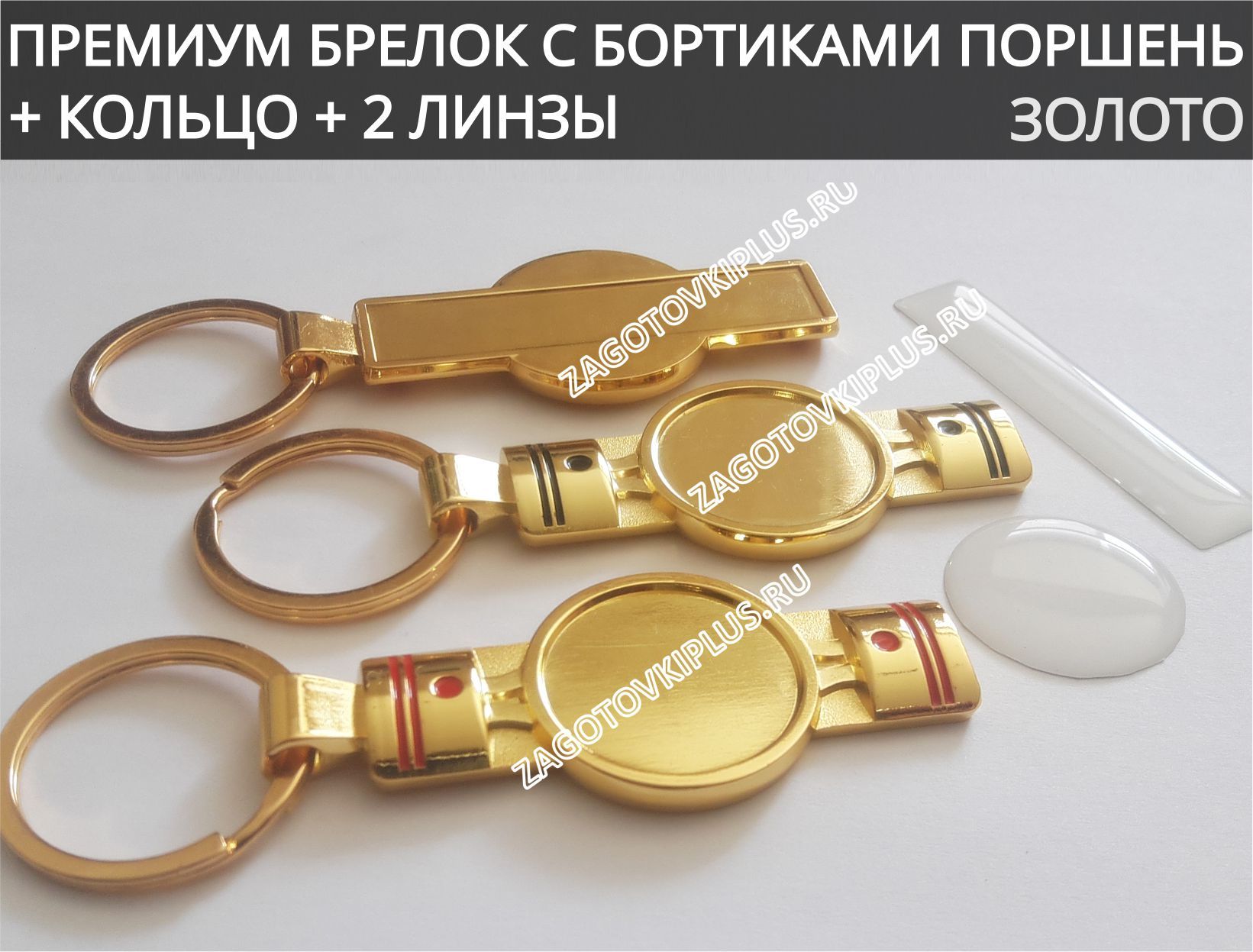 Премиум заготовка с бортиками для брелоков "поршень" в комплекте с линзами (цвет золотой)