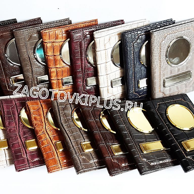 Обложки сделаны из искусственной кожи крокодила. Заготовки обложек имеют специальные металлические вставки с бортиками, которые не темнеют и не облезают. Благодаря этим бортикам изображение защищено от механических воздействий, а полиуретановая линза защищает картинку от выгорания и стирания.