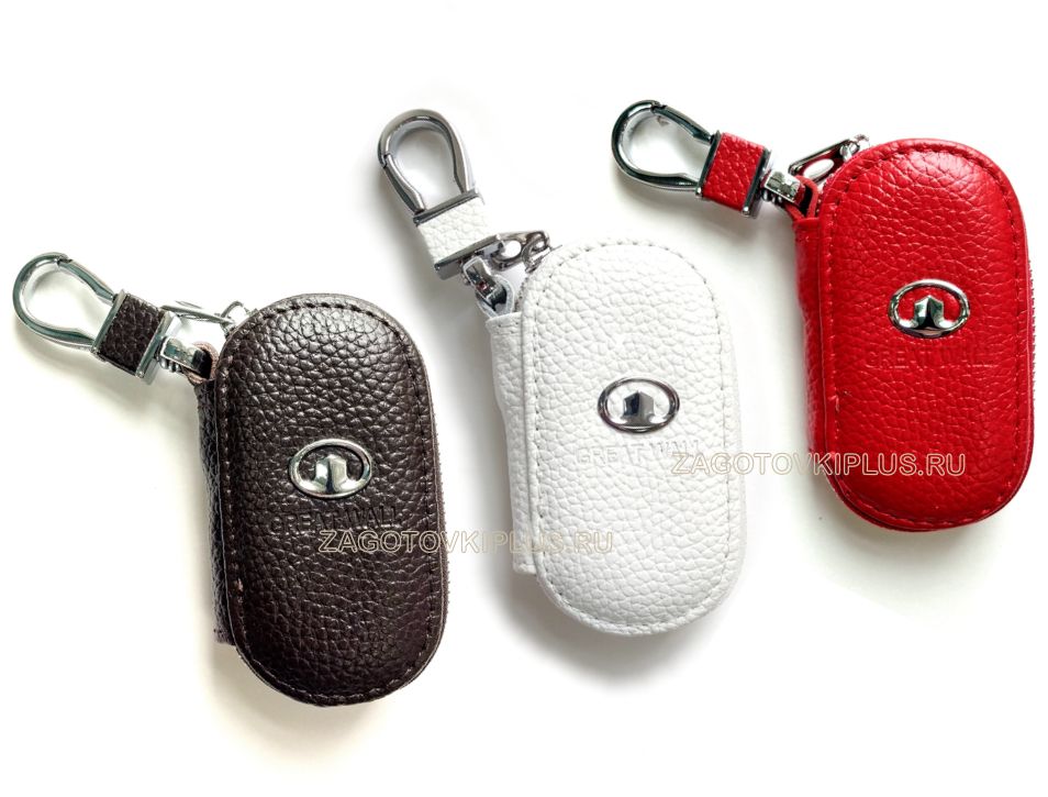 Ключница авто овальная из натуральной кожи флотер с логотипом GREAT WALL(красный)