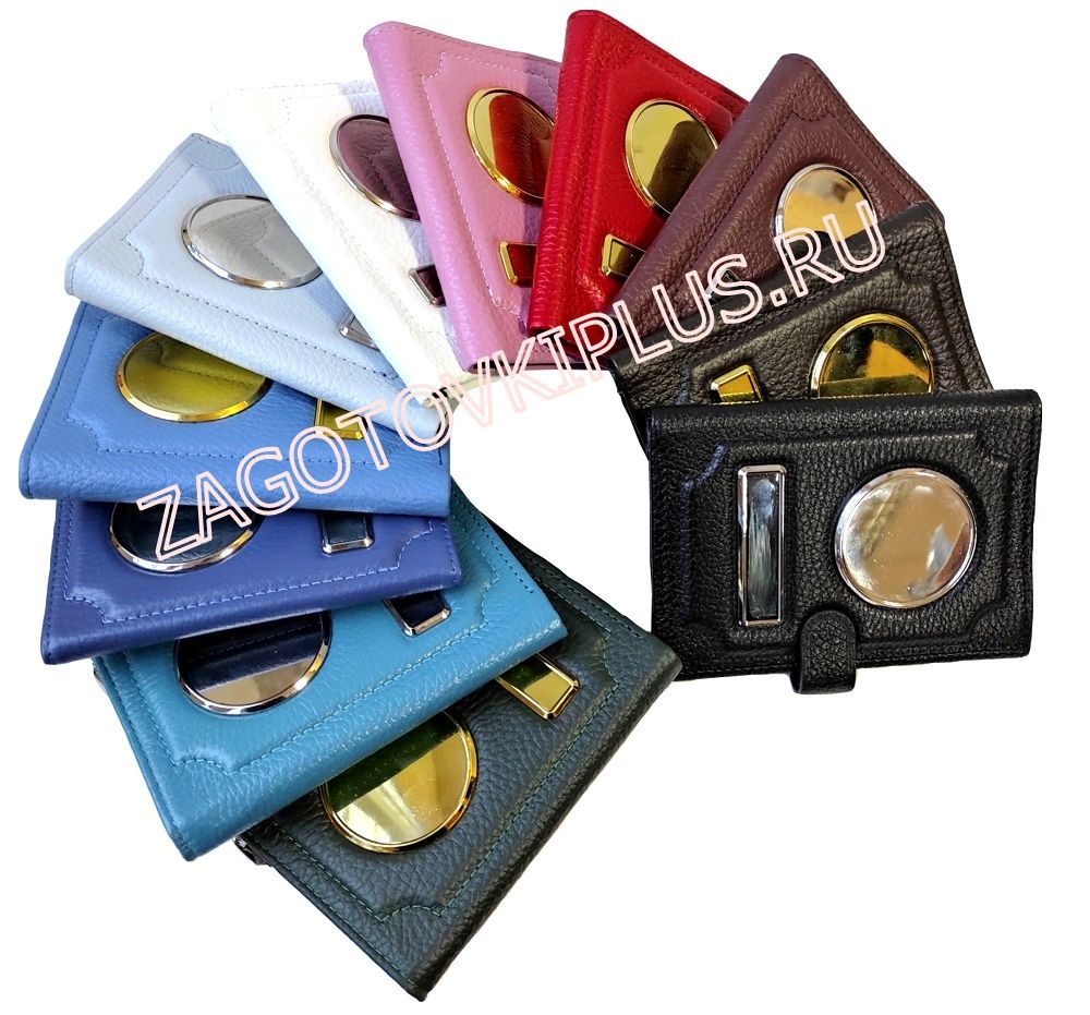 - металлические вставками круг и прямоугольник цвета хром или золото на Ваш выбор (уже надежно прикреплены на портмоне)
