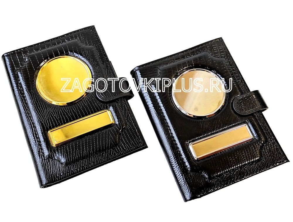Элит обложка 2в1 с застёжкой из натуральной кожи "змея" для авто документов и паспорта с визитками в комплекте с линзами (золотистые вставки)