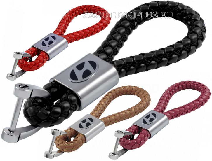 - плетёный ремешок из натуральной кожи с хромированным логотипом авто