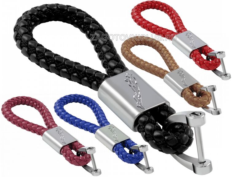 - плетёный ремешок из натуральной кожи с хромированным логотипом авто