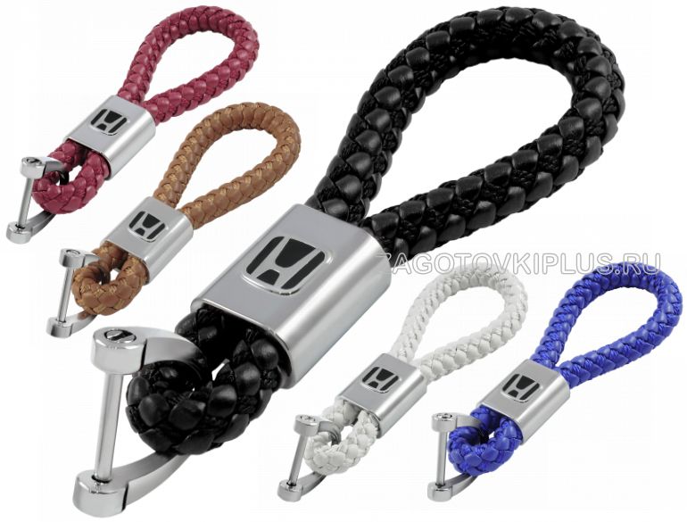 - плетёный ремешок из натуральной кожи с хромированным логотипом авто