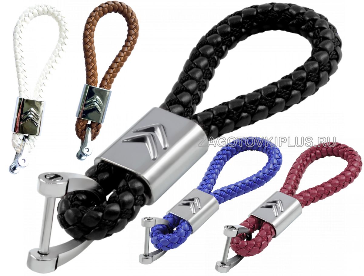 - плетёный ремешок из натуральной кожи с хромированным логотипом авто