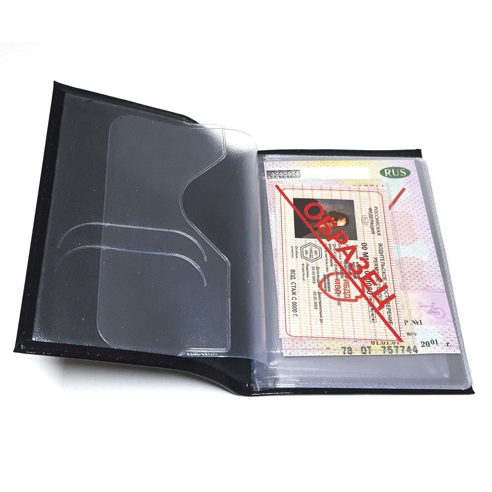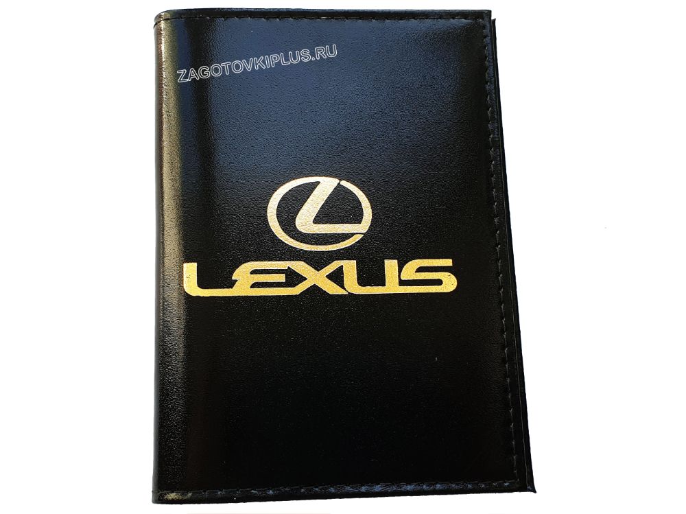 Черная кожаная обложка для авто документов с золотым тиснением логотипа.