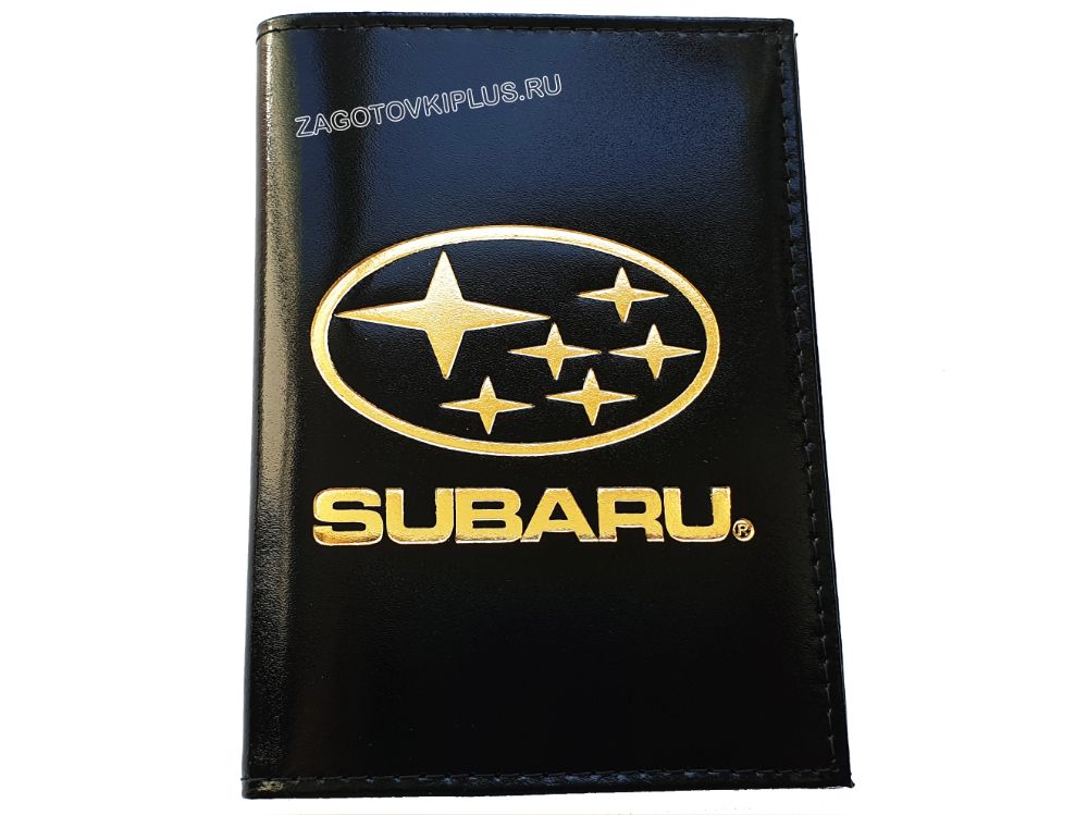 Черная кожаная обложка для авто документов с золотым тиснением логотипа.