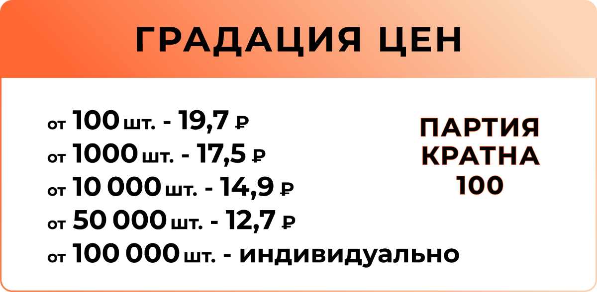 Оптовые цены с учётом скидки от количества менеджер рассчитает после оформления заказа и пришлёт Вам счёт для оплаты.