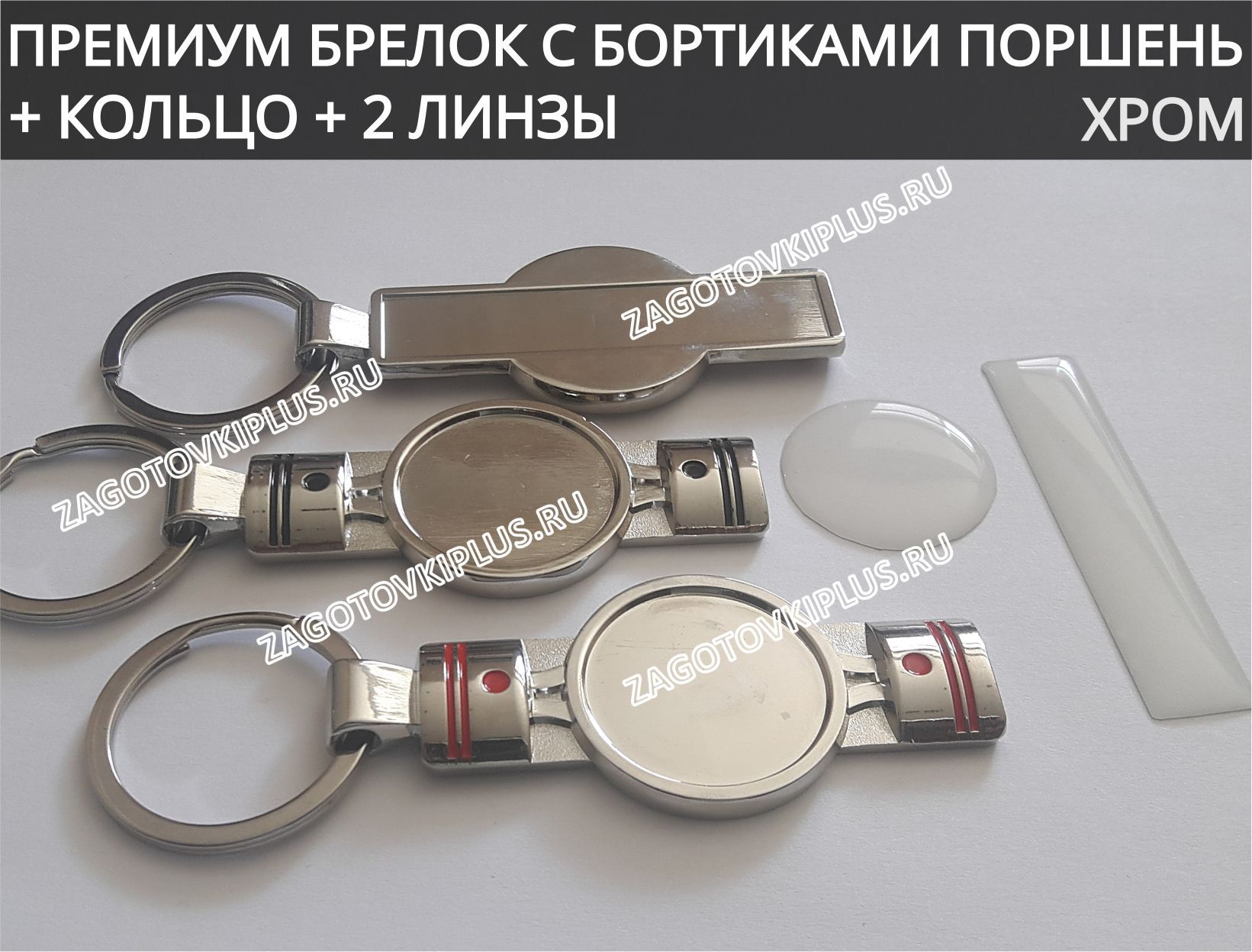 Премиум заготовка с бортиками для брелоков "поршень" в комплекте с линзами (хром)