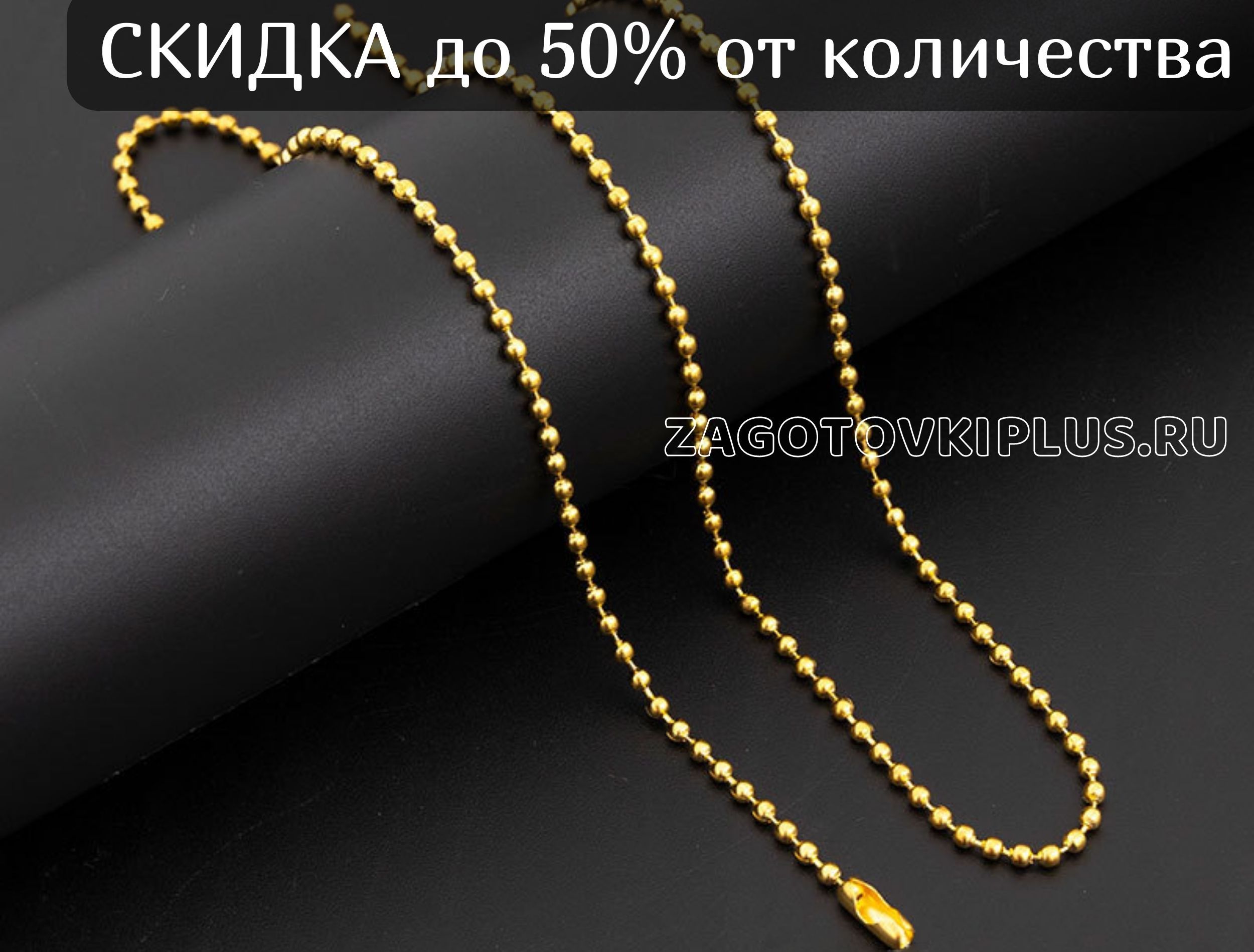 Под заказ сделаем поставку любых других длин цепочек, от маленького до большого диаметра шарикового звена, различных цветов: серебро, золото, бронза, чёрные, красные, голубые, зелёные и другие. Напишите Ваш запрос на почту info@zagotovkiplus.ru .