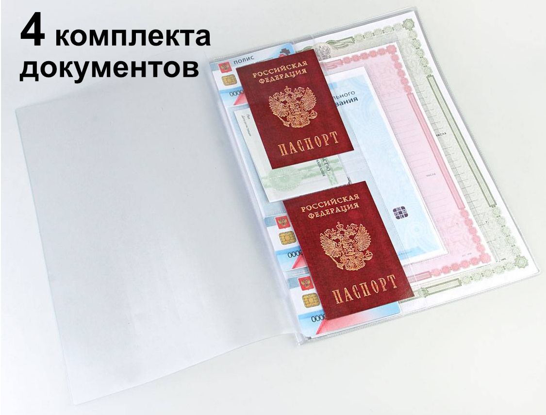 - 4 отдела А4 под свидетельство о рождении нового образца, ПТС на автомобиль, ИНН и т.п. (212х305мм).